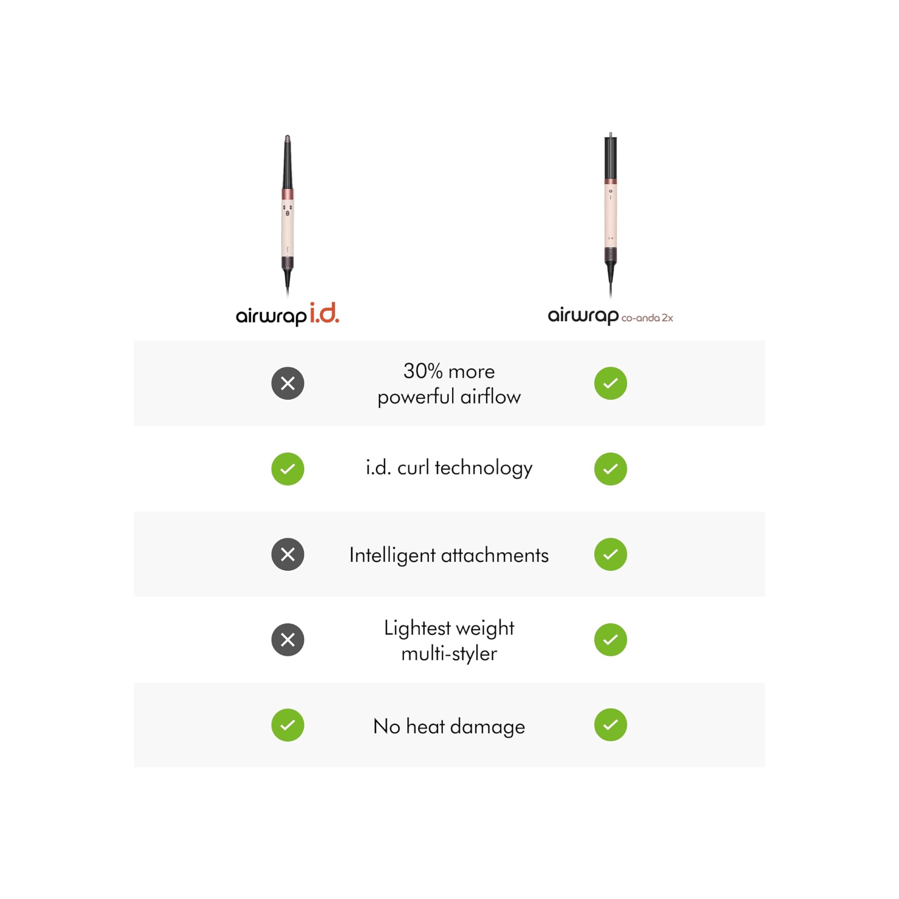 • Stronger Coanda airflow for better curling. Easier, tighter wrapping around the barrel – for defined curls.¹