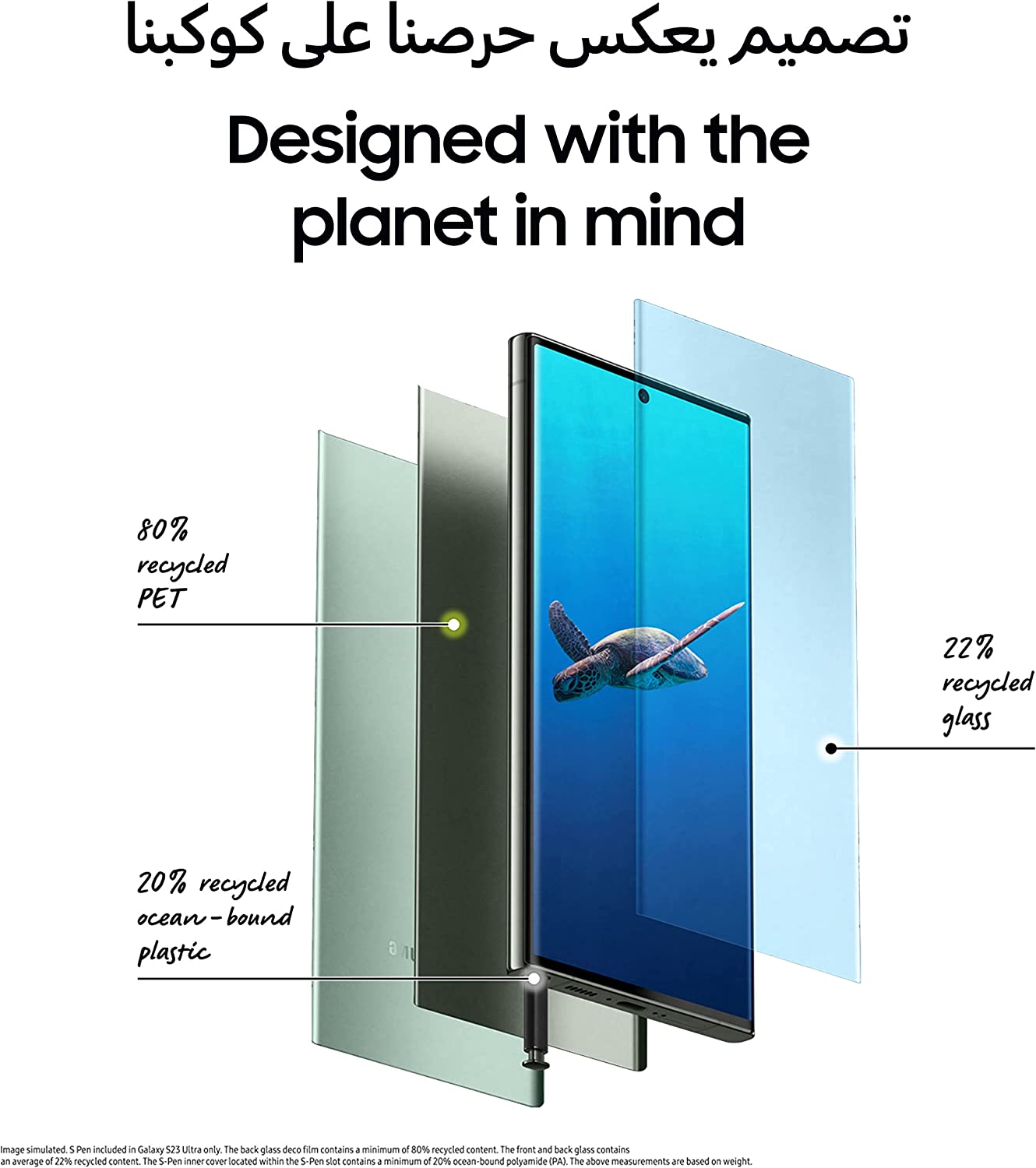 - The use of conscious materials makes this our most eco-friendly smartphone ever. Recycled glass and PET film accent the phone's exterior, and box made from recycled paper makes it planet-loving from the moment it hits your hands.